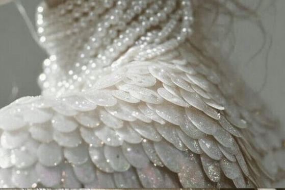 hair washed blonde, near white/grey in a body of water.eyes ashen grey, almost a pastel blue under sunlight or in water.height 5"5 mortal | tail span into account, 6"1.siren appearance Feathers still adorn her arms, shoulders, and hair like traces of forgotten wings. Her eyes shimmer like fog across waves, and her voice carries a haunting resonance.conditions survivors guilt.
